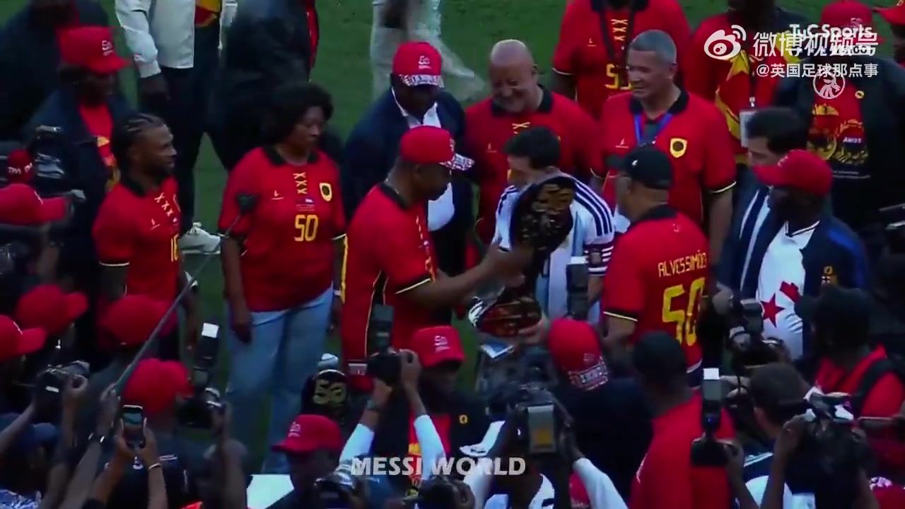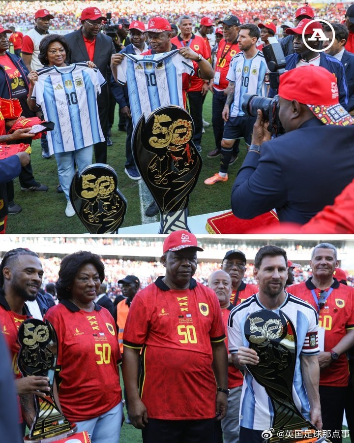 阿根廷与安哥拉比赛前,梅西将球衣赠予安哥拉总统,总统回赠他一座纪念安哥拉独立50周年的特别奖杯。