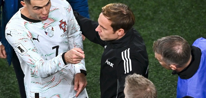 而在本场比赛赛后,哈尔格里姆松也谈到了C罗下场时与他们对峙的事件。 C罗说了什么? 哈尔格里姆松:“他称赞我给裁判施加了压力,听着,这跟我一点关系没有,是他的行为导致自己被罚下,和我没关系,除非我能钻进他脑子里。” 赛后有任何交流吗? 哈尔格里姆松:“不,我觉得他下场后我们已经聊得够多了。没什么好说的。要我说,那一刻就是他自己犯了点傻而已。”