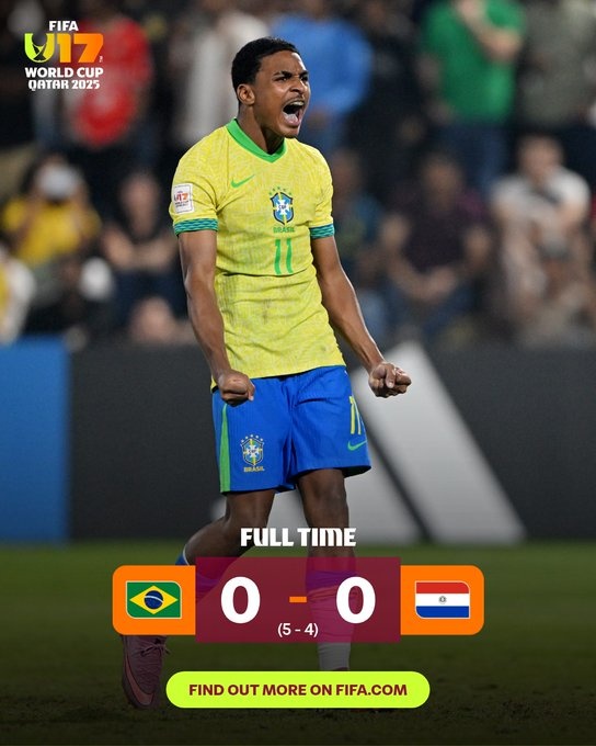U17世界杯:常规时间互交白卷,巴西点球大战5比