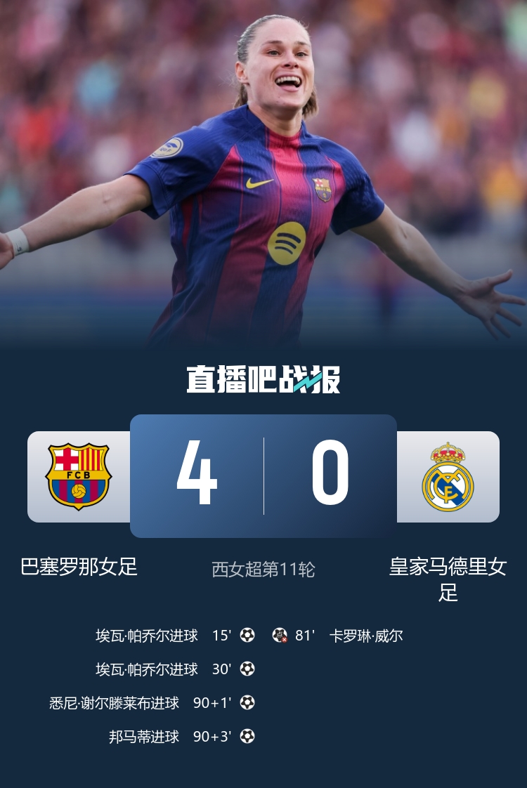 帕乔尔双响,谢尔滕莱和邦马蒂破门,巴塞罗那女足4-0皇家马德里女足! 【其它新闻】 安切洛蒂:加布里埃尔内收肌受伤了,具体严重程度还不清楚