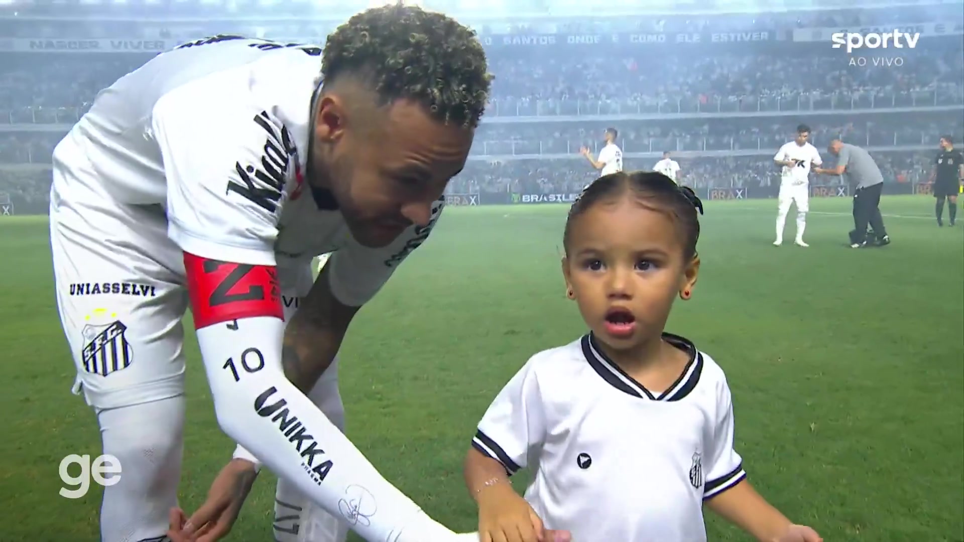 温馨一幕!内马尔巴甲赛前牵着女儿玛维入场