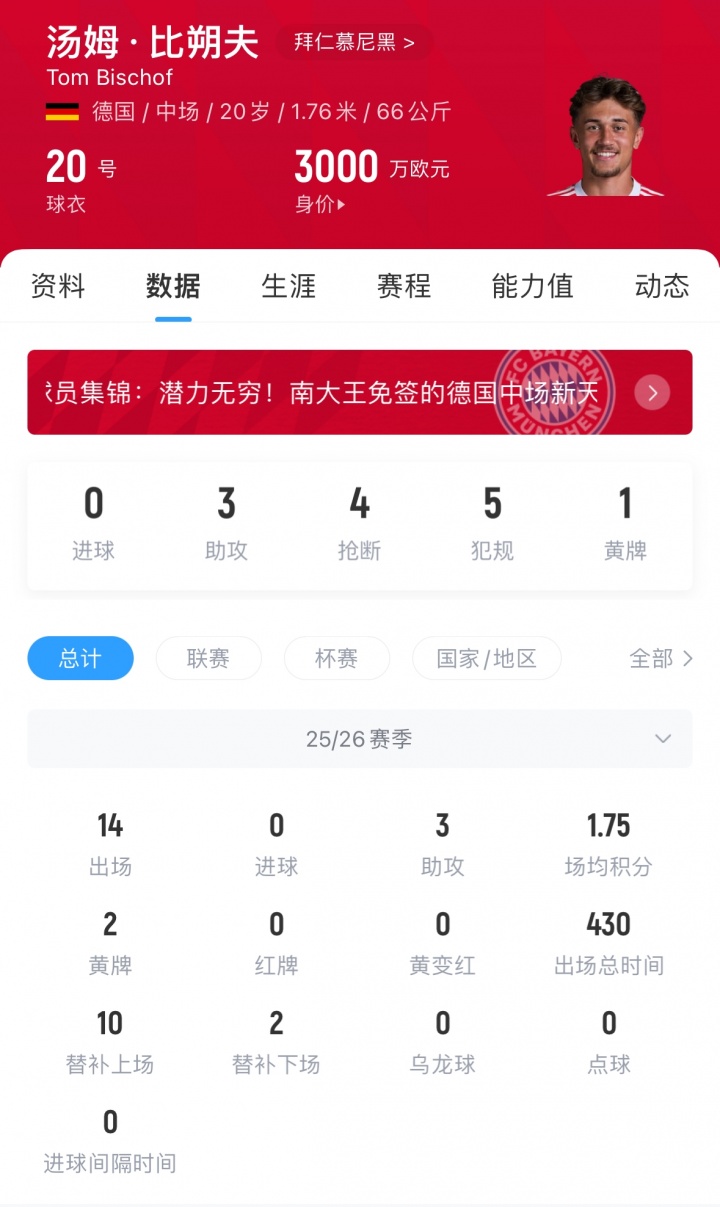 20岁拜仁新星!比朔夫U21欧预赛远射戴帽,赛季已