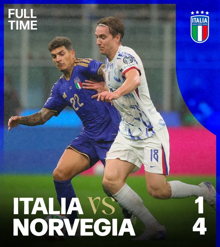 足球比分网11月17日讯 世预赛欧洲区,意大利主场1-4惨败挪威,加上首回合0-3惨败,他们两度被暴打无缘直通世界杯。 本届世预赛,将是意大利连续第三次参加世界杯附加赛,而此前两届,他们均没能突围,两度无缘正赛。2017年的世预赛附加赛,意大利0-1、0-0被瑞典淘汰。2022年世预赛欧洲区附加赛半决赛,意大利爆冷0-1不敌北马其顿。 意大利当前FIFA排名第9,他们是参加附加赛排名最高的球队。本期意大利的名单,全队身价高达8.46亿欧,排名世界第5,比他们高的只有英格兰、法国、西班牙和巴西。作为对比,挪威的世界排名为29,全队身价4.79亿欧世界第11。 |