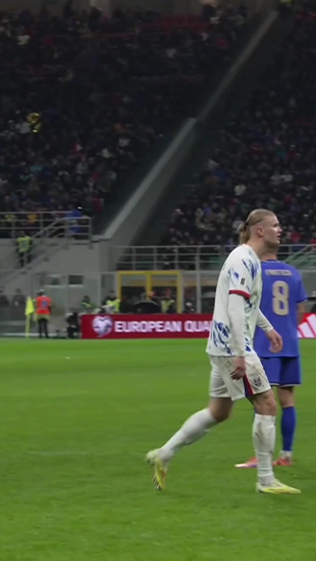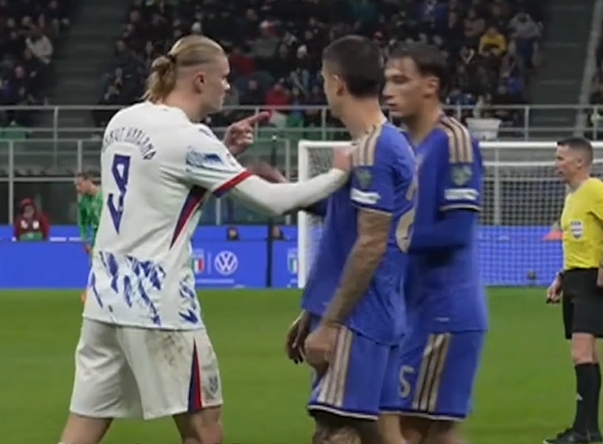 足球比分网11月17日讯 世预赛欧洲区小组赛I组第6轮,意大利在圣西罗球场1-4遭挪威逆转,哈兰德下半场2分钟2球。 比赛第67分钟,当时比分1-1平,双方就一次判罚发生争执,期间曼奇尼拍了一下哈兰德的屁股,随后哈兰德火气上来了,一直对曼奇尼喋喋不休。 随后挪威准备主罚任意球,哈兰德与曼奇尼再次发生冲突,哈兰德的曼城队友多纳鲁马抱着他尝试劝架,但双方球员持续斗嘴,最终哈兰德和埃斯波西托各吃一张黄牌。而在争执之后仅过了10分钟,哈兰德2分钟2球反超比分。