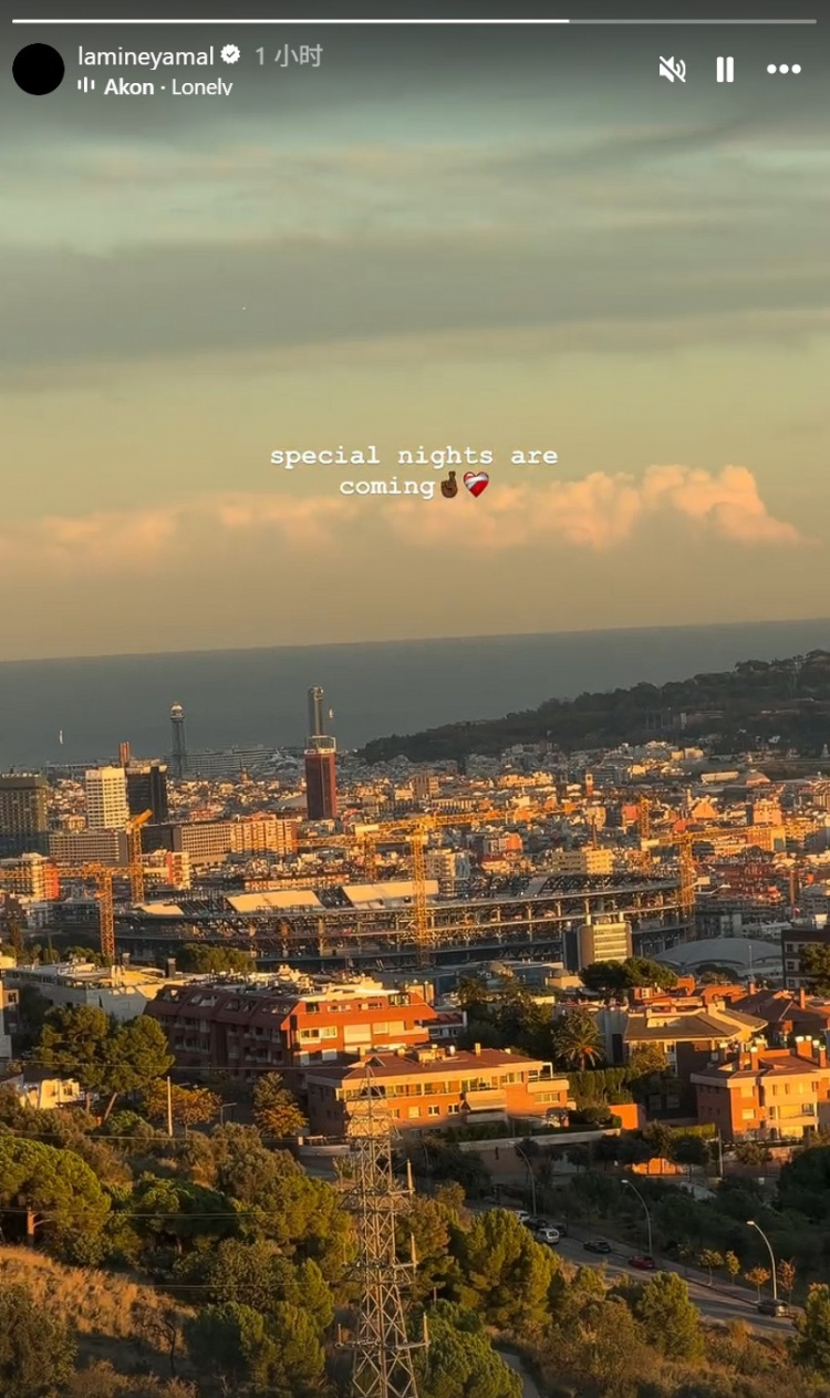 亚马尔社媒晒夕阳下的诺坎普球场:一个特殊的