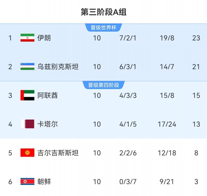 足球比分网11月19日讯 世预赛亚洲区第五阶段,伊拉克绝杀阿联酋挺进洲际附加赛。对此,媒体人陆洋在微博评价道: “伊拉克这个压哨绝杀把他们往世界杯正赛方向又推近了一步,也意味着西亚中国队再次无缘出线……国足和阿联酋‘不碰不出线一碰就出线’的历史怪圈再次延续,连扩军都改变不了这个规律,也是够邪门。 ” 世预赛第3阶段,国足与阿联酋分别被分至C组、A组;本阶段最终国足积9分排名小组第5无缘晋级下一阶段,阿联酋积15分排名小组第3晋级。