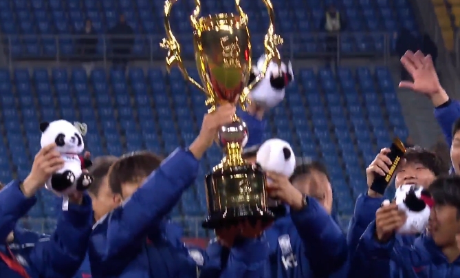 足球比分网11月18日讯 熊猫杯颁奖典礼,2胜1负的韩国队捧起冠军奖杯,中国队1胜1平1负收获亚军银盘。