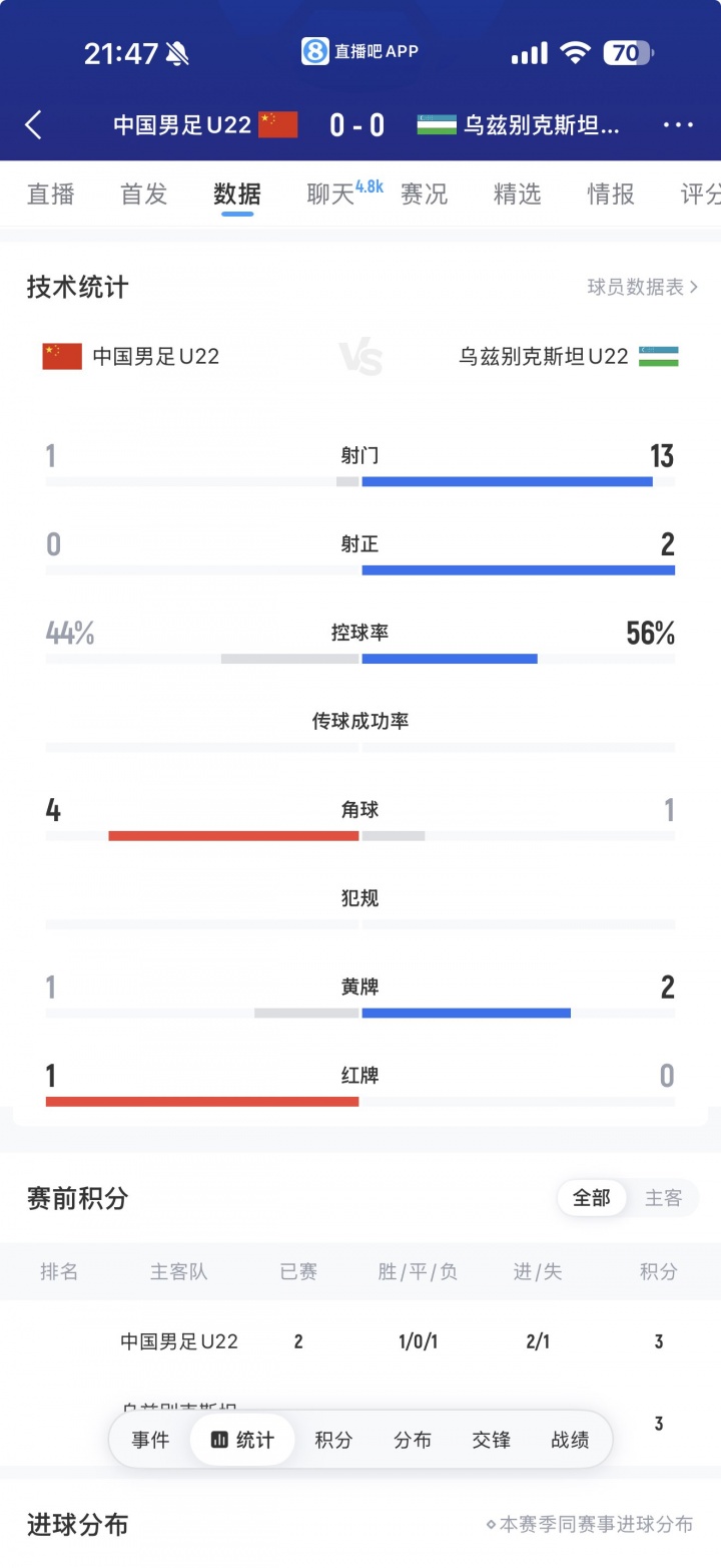 全场仅1脚射门!全场数据:U22国足射门1-13落后乌 时间: 2025-11-19 来源: 网络 作者: admin 上一篇:目睹汪士钦直红!国足主帅邵佳一、足协主席宋 下一篇:媒体人:汪士钦未来一段时间不要进国字号,联