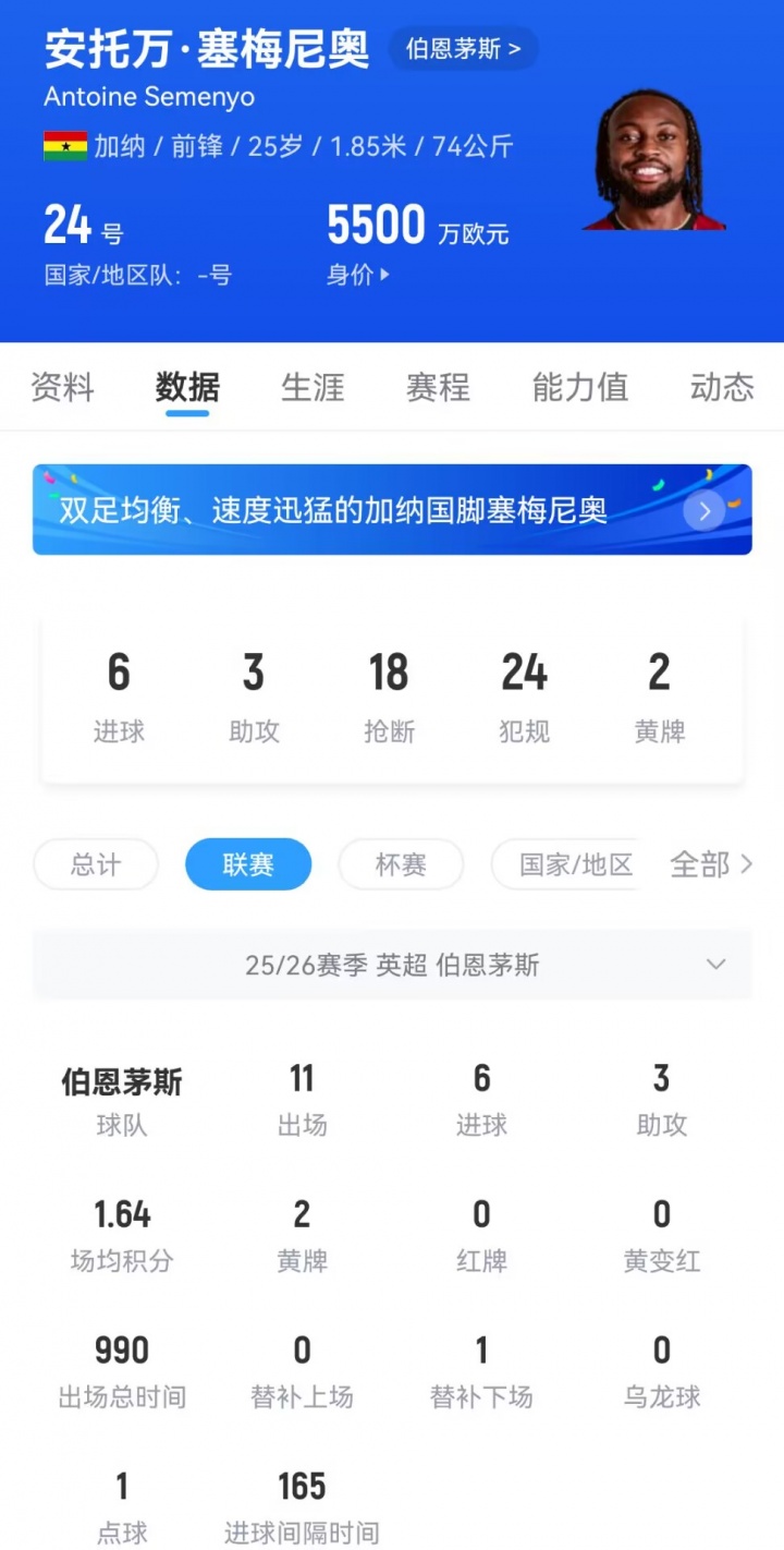 联赛11轮轰6球3助!镜报展望塞梅尼奥未来:曾亲