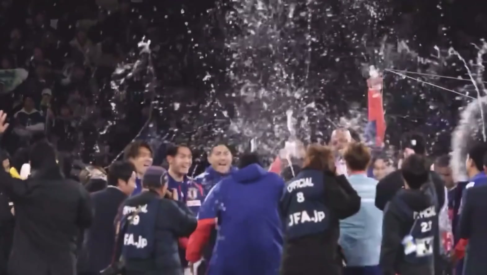 3-0击败玻利维亚后,日本队球员集体向执教100场