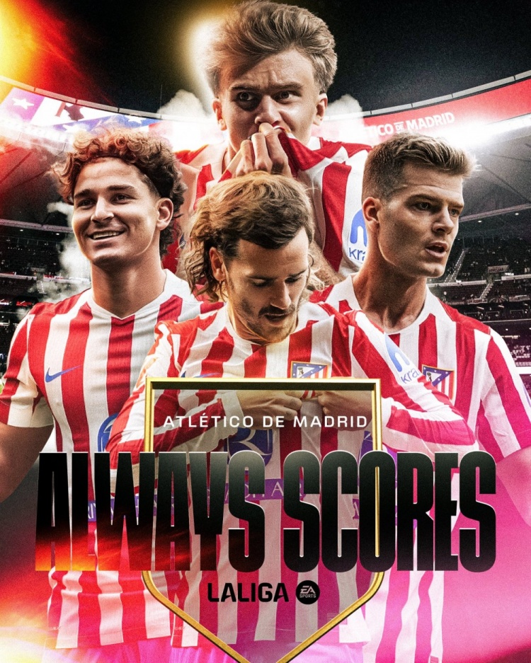 马竞赛季前12轮西甲比赛皆有进球,1982-1983赛季之