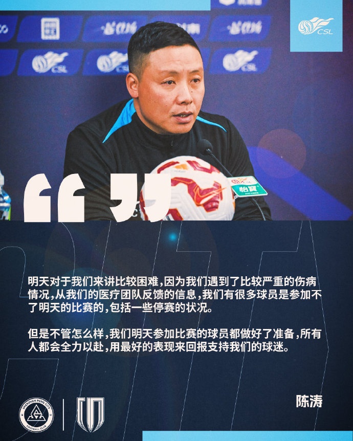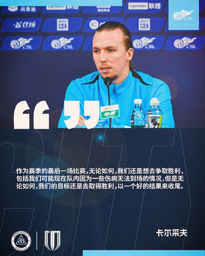 11月22日15:30,2025华润饮料中超联赛第30轮,深圳新鹏城坐镇主场肇庆新区体育中心体育场迎战成都蓉城。 今天下午,代理主教练陈涛和球员卡尔采夫出席了赛前发布会。