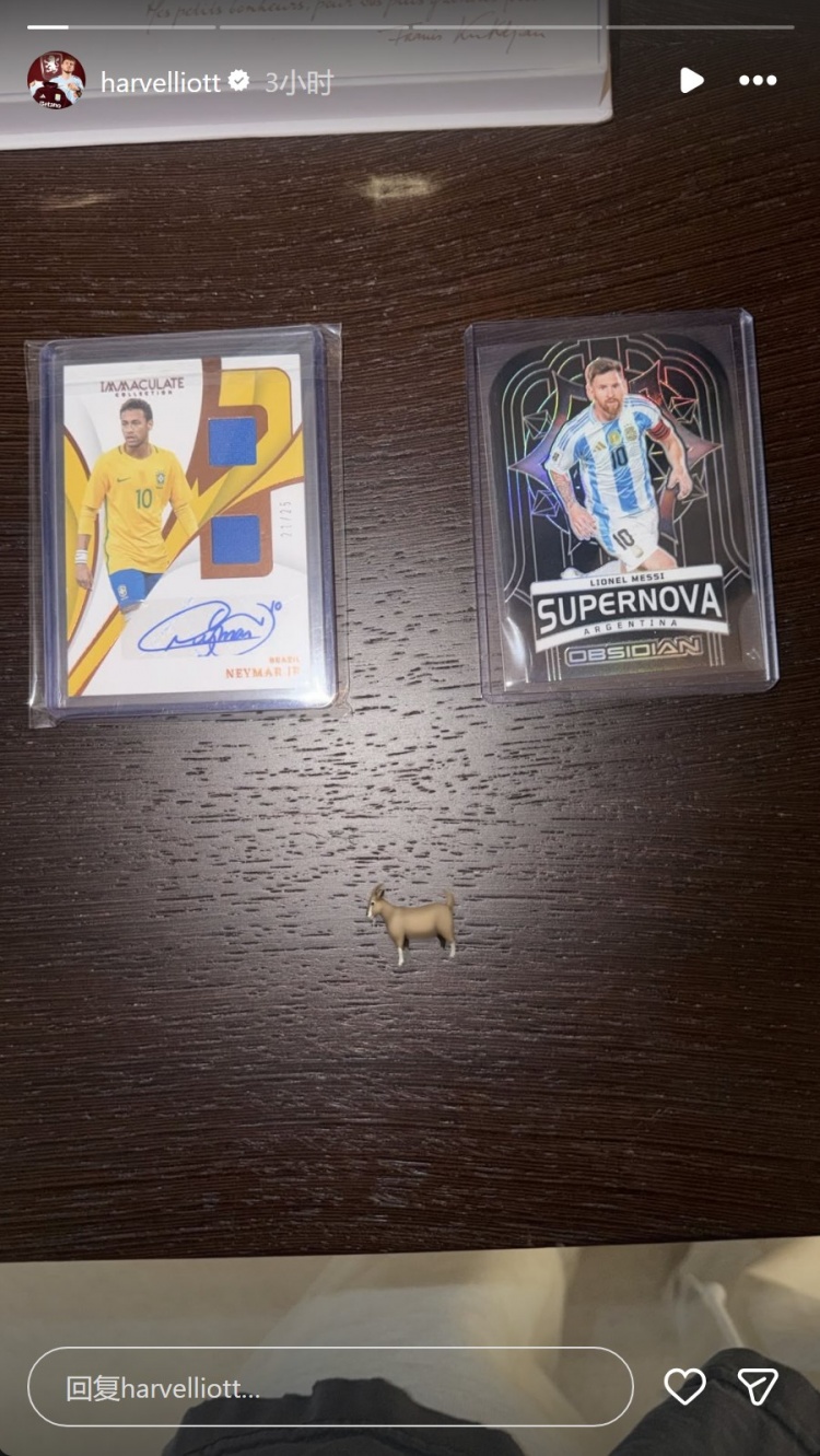 价值几何?埃利奥特社媒晒梅西、内马尔球星卡