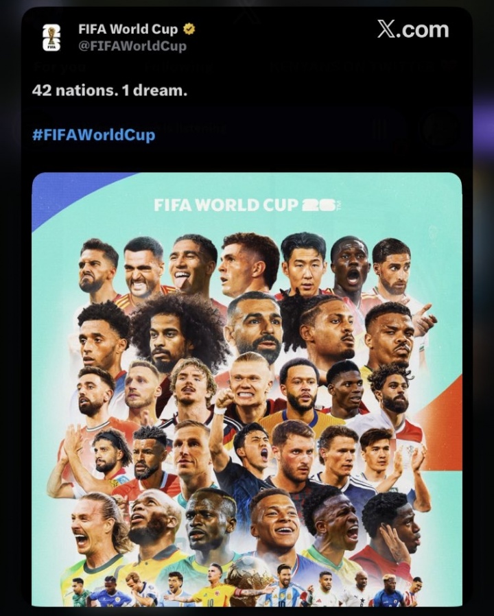 相关新闻:集结!世界杯官方晒首张直通42队海报:梅西、姆巴佩、哈兰德在内