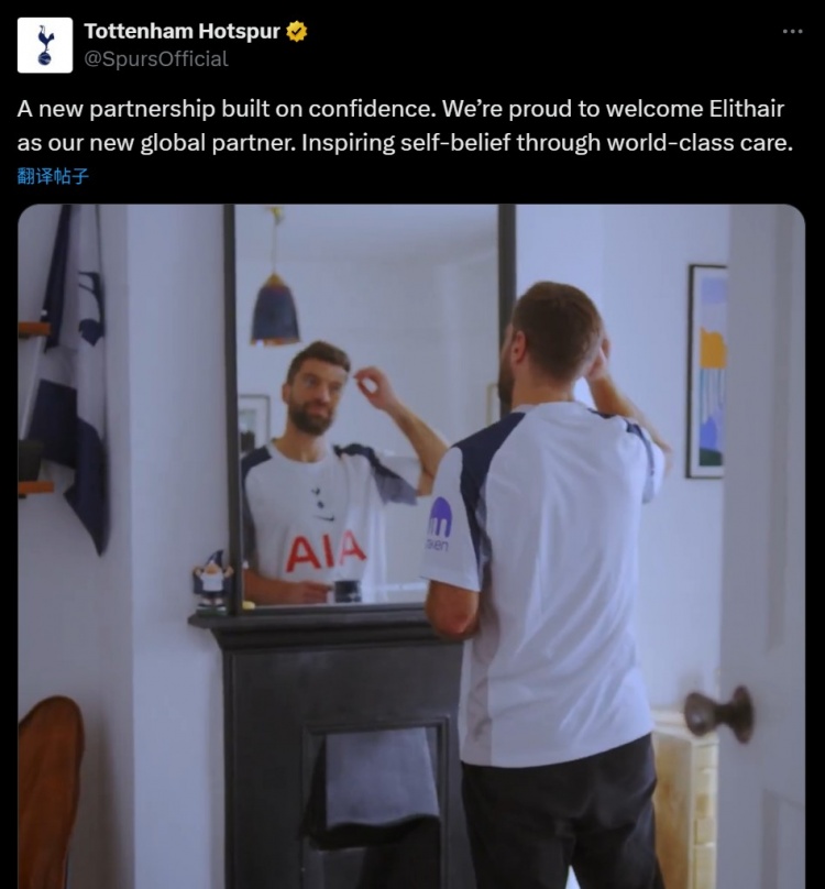 足球比分网11月22日讯 热刺官方宣布,同国际知名植发诊所Elithair达成全球合作伙伴关系。 热刺官推表示:“一项建立在自信心基础上的全新合作关系。我们非常自豪地欢迎 Elithair 成为我们新的全球合作伙伴。通过世界一流的护理,激发人们的自信。” 热刺俱乐部发布了的相关广告也主打温情牌,并没有球员出镜,但讲述了一位热刺球迷父亲在接受脱发治疗后重拾自信的故事——这种自信也传递给了他的儿子,他们还一起现场观看了热刺队的比赛。 英国男性秃顶基因众所周知,这也因此而引发了球迷们的调侃。值得一提的是,有消息称包括前热刺头号球星凯恩、当前中场核心麦迪逊在内的多位球员都曾接受过植发。 |