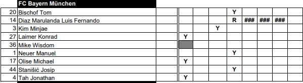 足球比分网11月22日讯 欧足联官方消息,拜仁前锋迪亚斯因欧冠联赛阶段第四轮对阵巴黎的比赛中吃到红牌,被禁赛三场,欧足联官方认定其动作为严重暴力犯规。