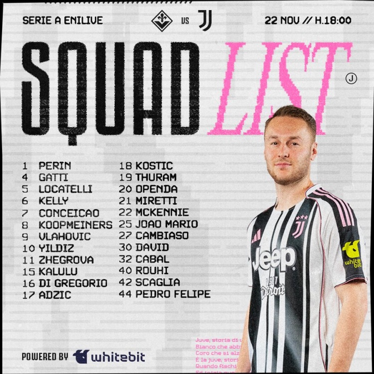 尤文公布客战佛罗伦萨大名单:伊尔迪兹、弗拉