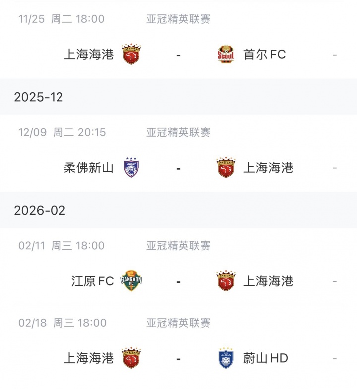 中超落幕,亚冠开启!海港蓉城申花暂分列亚冠