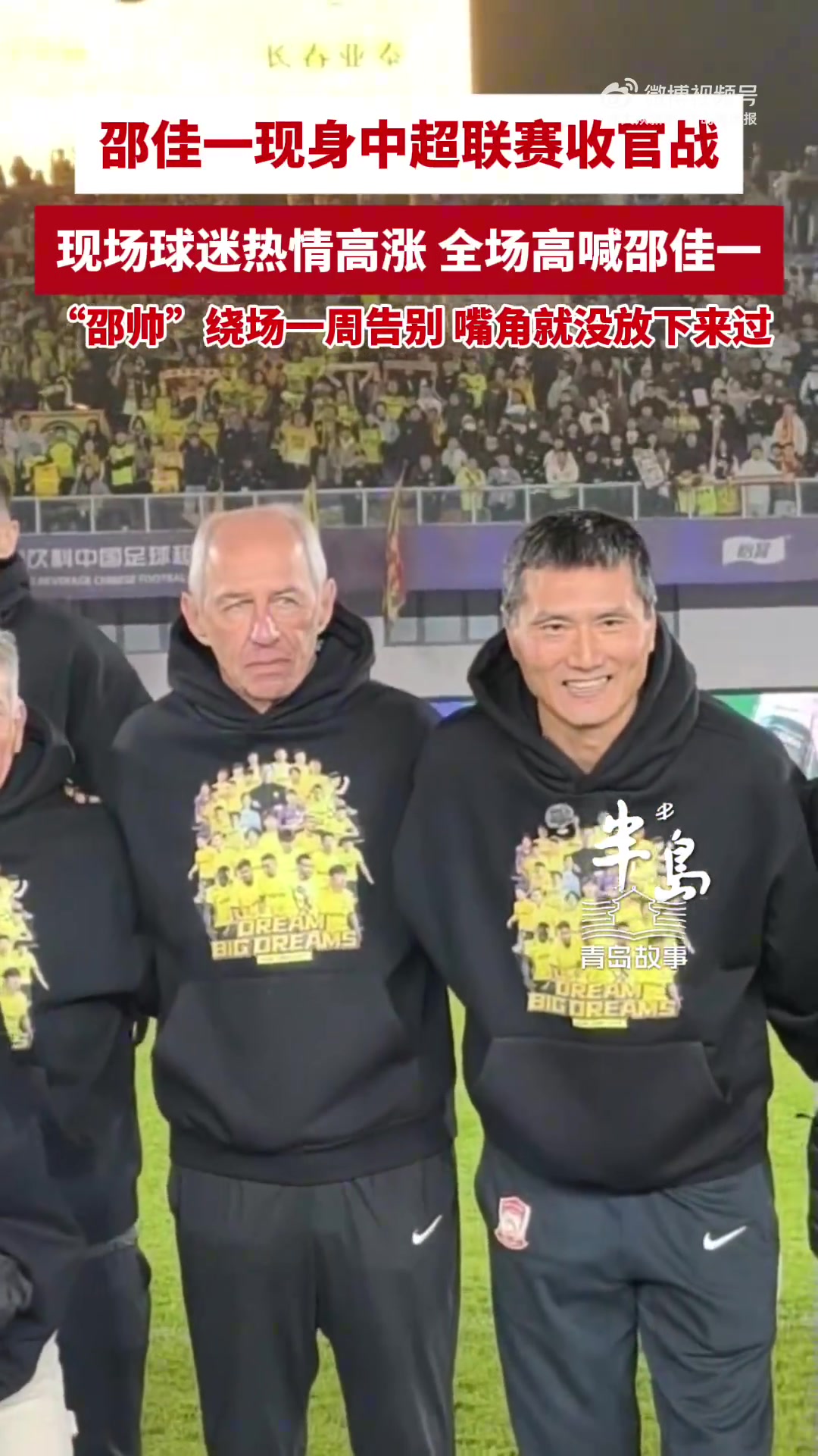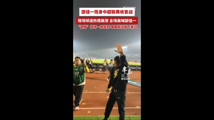 足球比分网11月23日讯 据山东媒体《半岛都市报》报道,在昨天中超赛后,邵佳一绕场一周感谢球迷。 11月22日,中超收官战青岛西海岸主场1-0战胜长春亚泰。赛后,西海岸俱乐部为新任国足主帅邵佳一举行简短而隆重的送别仪式。仪式后,邵佳一绕场一周,感谢球迷对他的支持。