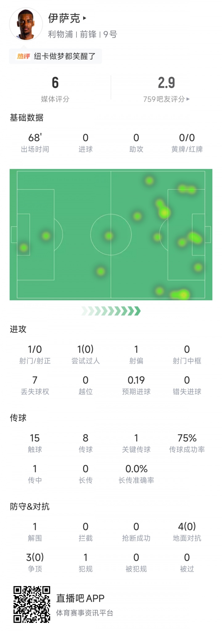 英超第12轮,利物浦0-3惨败诺丁汉森林,纽卡2-1击败曼城。 利物浦从纽卡淘来的前锋伊萨克表现欠佳,本场的数据更是一言难尽。赛季初的罢训事件和他此前的伤病依旧影响着这名瑞典神锋。 反观纽卡,从利物浦收到1.5亿欧的转会费之后,转手用这笔费用买下沃尔特马德和维萨,目前前者表现十分优异(维萨还在养伤)。他来到英超后,9轮比赛攻入4球,这名德国中锋在国家队表现也不错,世预赛6场4球1助。 不过,纽卡目前在英超战绩很一般,尽管拿下曼城,他们依旧排在英超下半区。欧冠方面纽卡倒是很强势,排在第6位。 喜鹊卖掉“一心参军”的伊萨克,拿下1.5亿欧巨款后平替沃尔特马德+维萨,“国骂哥”可圈可点,维萨有待观察。吧友们认为纽卡的这笔买卖,如何呢? 伊萨克本场数据: