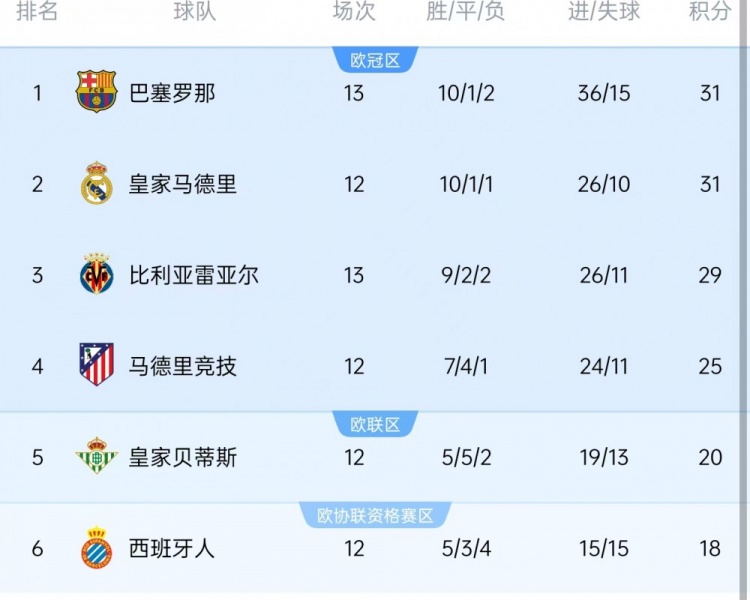 比利亚雷亚尔西甲前13轮积29分,创造队史西甲同