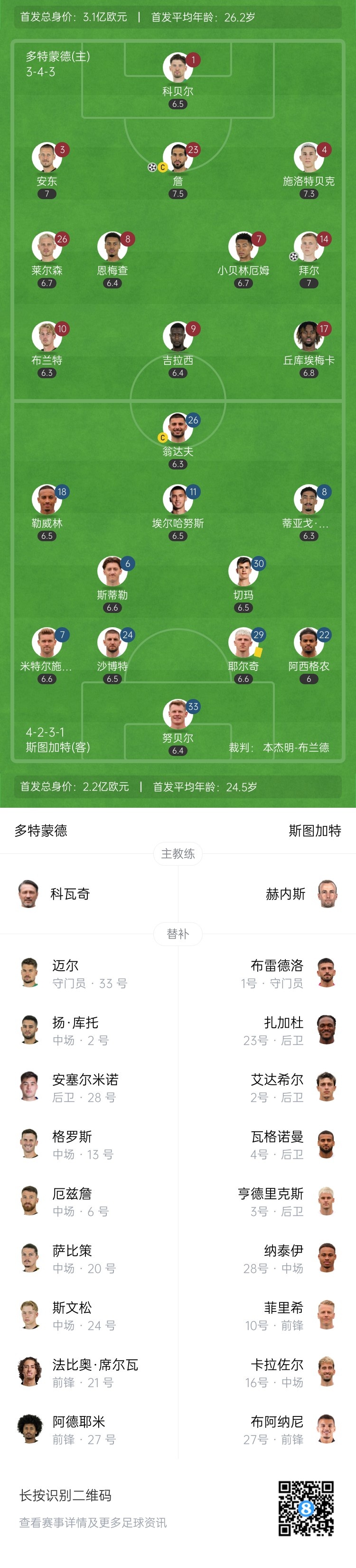半场-多特蒙德2-0斯图加特 埃姆雷·詹点射破门拜