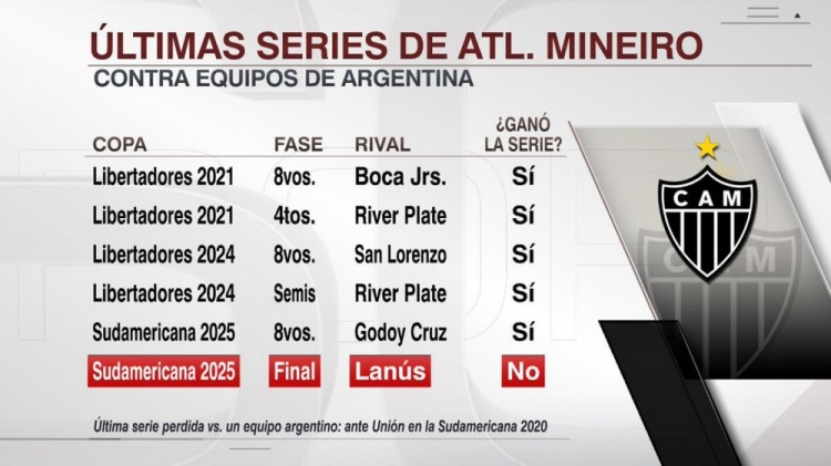 南美杯决赛落败!米内罗竞技对阵阿根廷球队5连