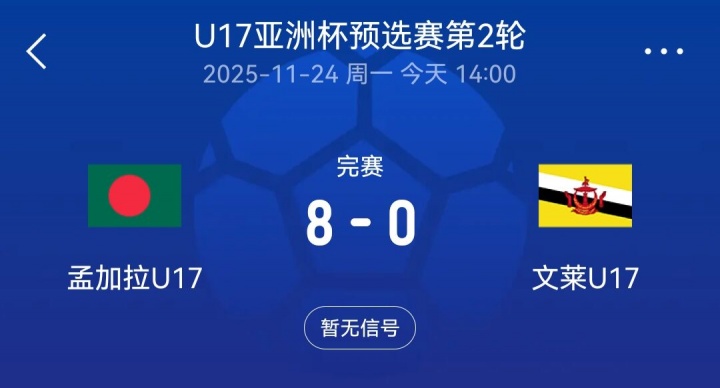 U17亚预赛:孟加拉8-0文莱两战进13球 国少今晚需