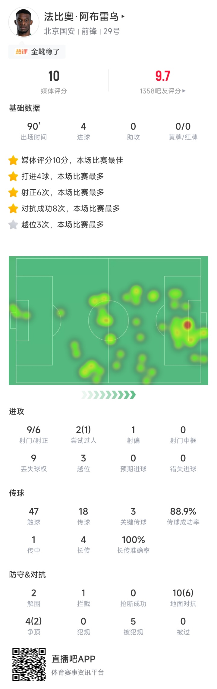 【直播吧】中超第30轮最佳:法比奥!大四喜+2