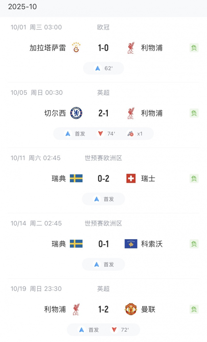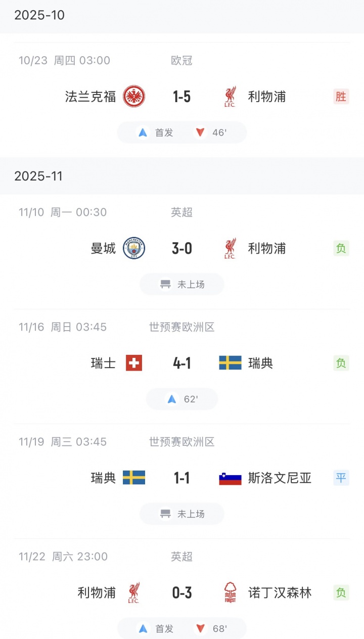 足球比分网11月23日讯 北京时间昨晚英超第12轮,利物浦0-3负于诺丁汉森林队,利物浦在夏窗花费1.45亿欧签下的瑞典前锋伊萨克,本场比赛4项关键数据挂零(进球、助攻、成功过人、抢断)。 这场比赛后,伊萨克在出场的15场国家队和俱乐部的比赛中只打入1球,那一球是利物浦对阵南安普顿的联赛杯打入的。