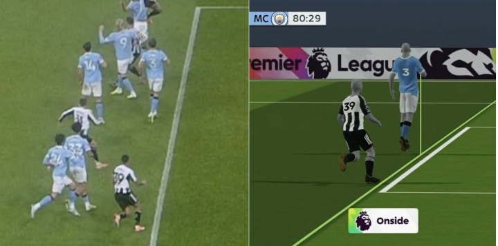 足球比分网11月23日讯 本轮英超纽卡2-1击败曼城,纽卡的第二粒进球经过VAR长时间确认最终有效,引发争议。 针对此球,球迷@InvertTheWing在社媒发帖三问裁判公司,该贴已获近百万浏览量,众多球迷参与热议。帖文内容如下: 你好,裁判公司 我们作为注重体育公正性的球迷,要求公开使用“半自动越位”技术时的实时录像。 1. 为何一项号称“半自动”的技术需要花费5分钟做出判罚?在欧冠比赛中从未见过此种情况。 2. 为何在第二张图像中鲁本·迪亚斯呈现起跳动作? 3. 为何迪亚斯的划线位置仅从其手臂处开始?