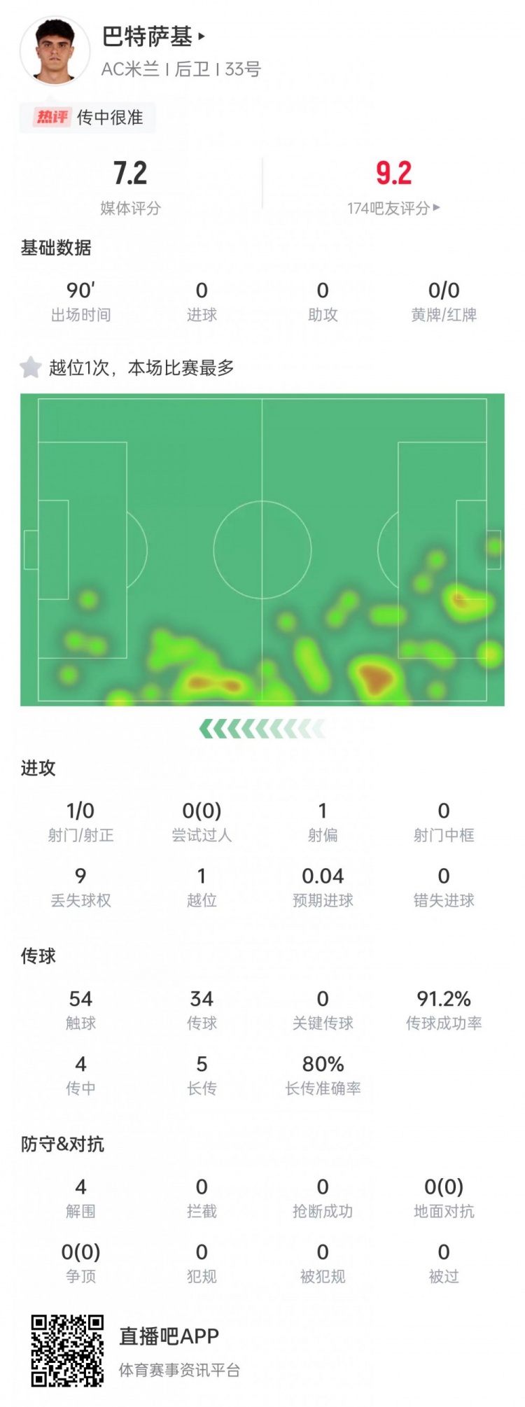 足球比分网11月24日讯 意甲第12轮比赛,米兰1-0击败国米。 据意大利记者斯基拉报道,意大利国家队主帅加图索来到圣西罗,现场观看了米兰德比,考察米兰左后卫巴特萨基的表现,这位19岁的球员可能入选意大利队。