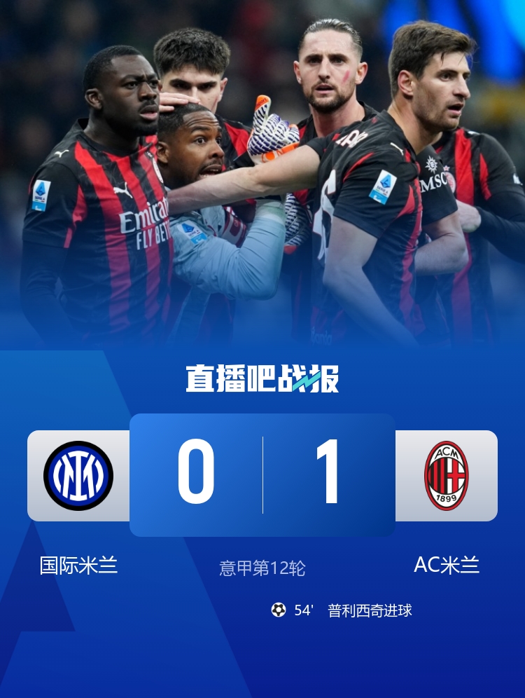 足球比分网11月24日讯 意甲第12轮,米兰1-0战胜国米笑傲米兰德比,至此米兰已经实现6场德比不败,同时终结了对手的各赛事4连胜。