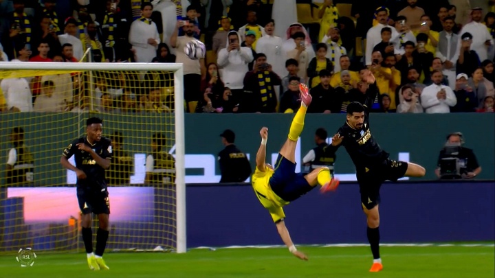 C罗今日代表利雅得胜利打进的精彩倒钩