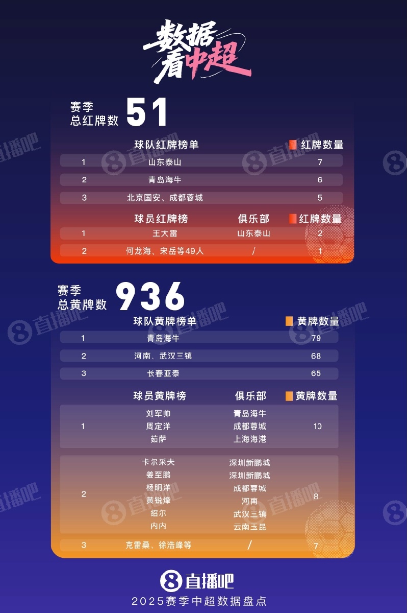 数据看中超|赛季红牌51张 泰山7张红牌领跑 王大 时间: 2025-11-27 来源: 网络 作者: admin 上一篇:裁判评议赛季汇总:蓉城因重要判罚吃亏3次最多 下一篇:中超外援哪家强?2025中超各队外援进球占比:申