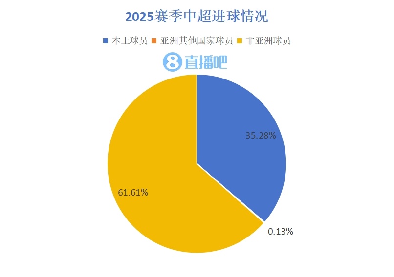 图:2025赛季中超进球球员地区占比分布情况 外援&本土球员进球贡献