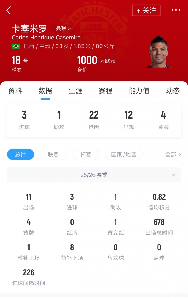 足球比分网11月26日讯 曼彻斯特晚报记者Steven Railston撰文谈到了卡塞米罗在球队的未来,这位33岁的巴西中场在曼联的合同即将到期。 记者在文章中表示,卡塞米罗在对阵埃弗顿的比赛中表现不佳,58分钟内没有完成一次抢断。这也再次印证了曼联不应与他续约。人们对卡塞米罗是否应该续约的讨论本身就是对他的肯定,但如果给他一份新合同,这将是一个错误的决定。 卡塞米罗或许仍能贡献几场高光比赛,但关键在于,曼联需要这个位置上有一名能每周稳定输出的球员,一名更年轻的球员。 卡塞米罗将于明年2月迎来34岁生日,同时他也是队内薪资最高的球员之一。若曼联选择与他续约,这将是类似伍德沃德时期的昏庸决策。支持卡塞米罗续约的人认为,可通过降薪让他留队并担任替补,但要知道,这是一位手握5座欧冠冠军奖杯的球员。 卡塞米罗恐怕不太可能接受大幅降薪,在曼联坐冷板凳,毕竟他还可以前往巴西联赛踢主力。无论如何,曼联都应主动掌握主动权 ,是时候向前看,寻找他的替代者了。