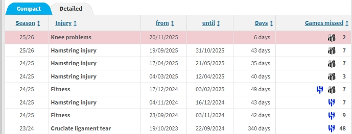 足球比分网11月25日讯 今日巴甲第35轮,桑托斯客场1比1战平巴西国际。 本场33岁的内马尔因膝盖伤情缺席,桑托斯主帅表示计划让内马尔下轮复出。据德转数据统计,自2023年10月重伤后,内马尔累计伤缺天数已达598天,期间累计缺席比赛90场。