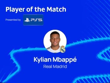 大四喜!姆巴佩当选皇马4-3奥林匹亚科斯一役全