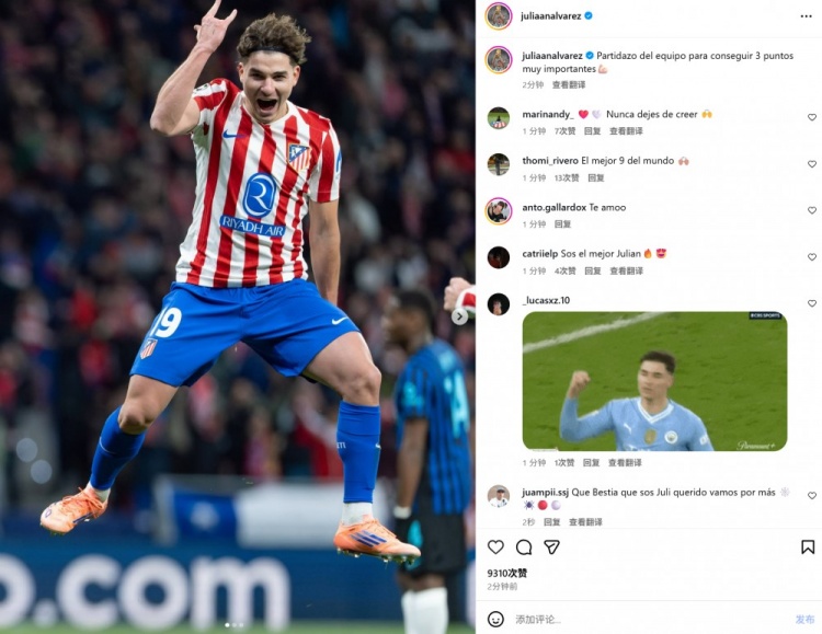 阿尔瓦雷斯社媒晒庆祝照:全队拿出很棒的表现