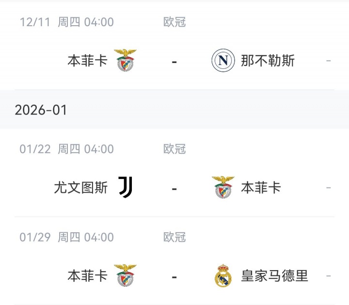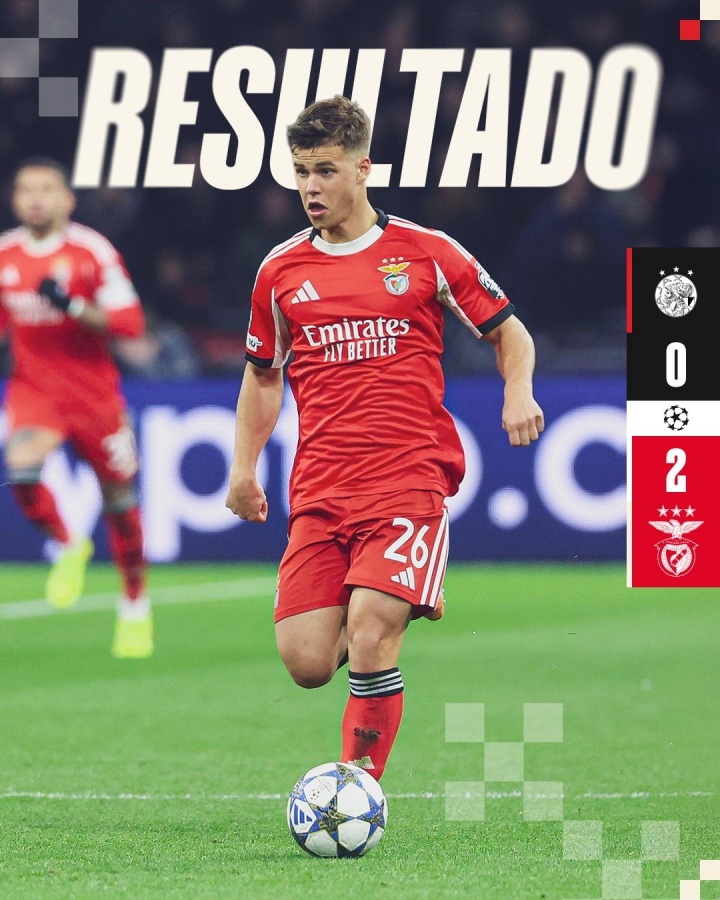 足球比分网11月26日讯 凌晨欧冠联赛阶段,本菲卡客场2-0战胜阿贾克斯,终于获得本赛季欧冠首胜。 本菲卡本赛季欧冠联赛阶段前4战全败,对手分别是卡拉巴赫、切尔西、纽卡和勒沃库森,出线形势岌岌可危。 在最后的3轮比赛中,本菲卡的对手依然很强大,他们要先后对那不勒斯、尤文图斯和皇马,出线难度飙升。