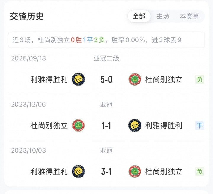 足球比分网11月26日讯 北京时间今晚21:45,亚冠二级小组赛D组第5轮,利雅得胜利客场迎战杜尚别独立。赛前,双方首发出炉。 【双方首发】 利雅得胜利首发:24-本托、2-哈纳姆、3-西马坎、5-阿姆里、83-纳吉迪、11-布罗佐维奇、19-哈桑、20-安吉洛、79-菲利克斯、80-韦斯利、16-马兰 利雅得胜利替补:36-纳贾尔、61-穆巴拉克、26-伊尼戈·马丁内斯、4-纳德尔、70-阿瓦德·阿曼、12-纳瓦夫、23-艾曼·叶海亚、17-哈巴利、56-拉坎·加姆迪、60-哈卡维、77-卡马拉、10-马内 本场赛前,亚冠二级小组赛D组,利雅得胜利4胜0平0负积12分,排名第1,杜尚别独立2胜0平2负积6分,排名第3。 【双方交锋历史】