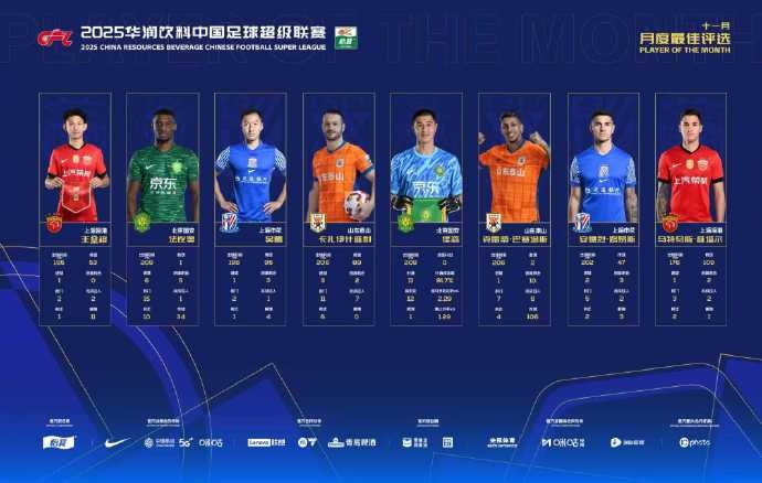 中超官方11月最佳候选:瓦科、吴曦、法比奥、王