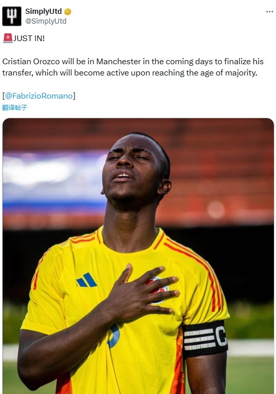 罗马诺:未来几天,哥伦比亚17岁小将奥罗斯科将