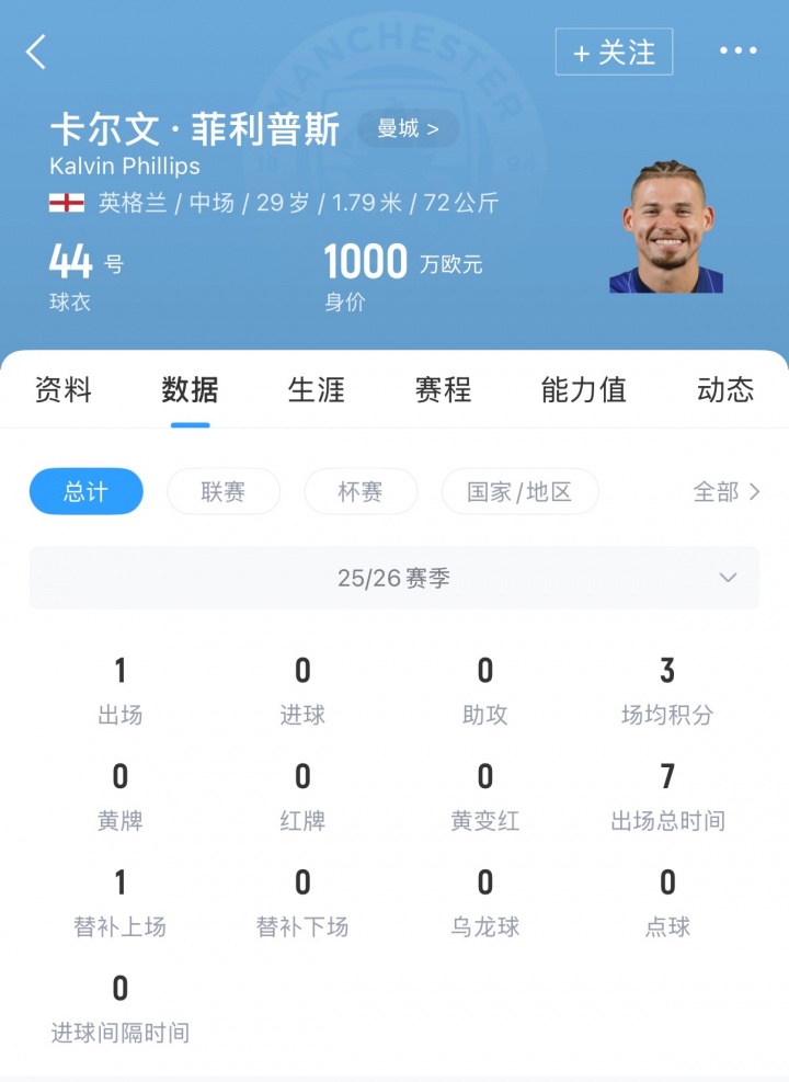 足球比分网11月27日讯 据英媒《镜报》报道,现年29岁的曼城中场菲利普斯希望在1月离开球队,重振自己的职业生涯。 报道称,菲利普斯即将年满30岁,自2022年以5000万镑的转会费加盟曼城以来,他仅代表蓝月亮在英超首发两次,此后他还被租借至西汉姆联以及伊普斯维奇,但均未获得成功。 今夏菲利普斯重回伊蒂哈德,但本赛季仅出场过1次,还是在联赛杯的比赛中。菲利普斯对自己的事业生涯下滑感到失望, 他认为自己需要迎接新的挑战,而不是逐渐被人遗忘。 文章还写到,利兹曾询问过租借可能,但希望曼城承担大部分薪资,因此这笔交易不太可能达成,菲利普斯或许只能考虑德国、法国、西班牙球队的报价。