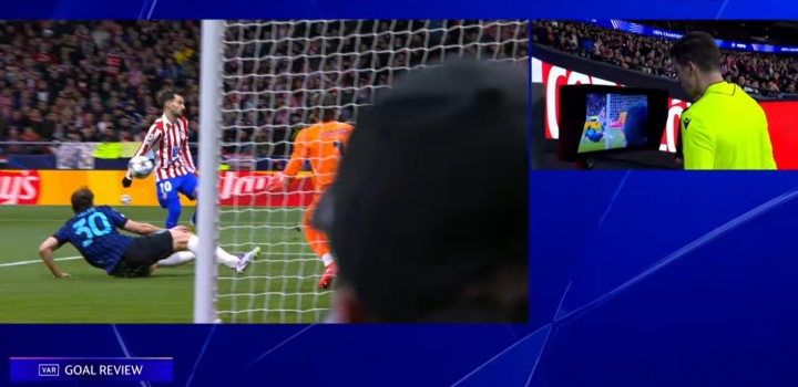 足球比分网11月27日讯 欧冠联赛阶段第5轮,马竞2-1国米。比赛第8分钟,阿尔瓦雷斯破门,法国主裁弗朗索瓦·勒泰西耶示意前巴埃纳手球在先,VAR介入,裁判查看回放后判罚进球有效、无手球。 尽管巴埃纳"手臂"触球,为何阿尔瓦雷斯的进球仍判定有效? 视频回放显示,一次右路传中后,国米后卫奥古斯托做出解围改变了球路,皮球先后撞击在巴埃纳的侧身和右手上,从画面可见,随后球又反弹到马竞球员,相当于"助攻"了对手。 在这次弹珠台般的连续反弹中,阿尔瓦雷斯得球后越过门将索默将球打进。主裁判勒泰西耶当即判罚进球无效,明确指出他认为马竞球员存在违规触球从而影响了进攻发展。但比赛并未立即恢复,VAR裁核查持续了数分钟,随后主裁判到场边查看回放。 回放显示,巴埃纳的接触程度轻微,且该接触被认定非故意行为,其手臂位置相对于身体运动轨迹亦未呈现不自然状态。裁判组最终认定该接触属于动态动作中的自然反应,球员当时别无选择。简而言之,他是被动遭遇来球,无法避免。 |