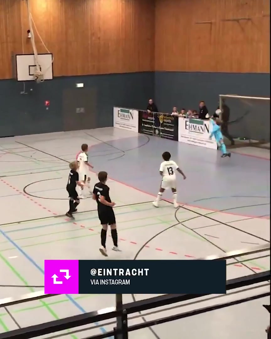 足球比分网11月28日讯 欧冠联赛阶段第5轮,拜仁1-3负于阿森纳,比赛中拜仁17岁小将卡尔破门一度将比分扳成1-1。 赛后TNT体育晒出视频,卡尔在11岁代表法兰克福梯队效力时,已经展现出了惊人的天赋,脚后跟停下高空球后转身凌空抽射破门。 |