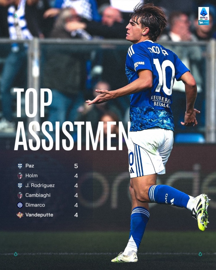 足球比分网11月29日讯 意甲第13轮比赛,尼科·帕斯送出助攻,帮助科莫主场2-0击败萨索洛。 尼科·帕斯本赛季意甲打进5球,并列排名意甲射手榜首位,助攻5次,登顶意甲助攻榜,意甲官方社媒晒出射手榜、助攻榜海报,对他表示祝贺。