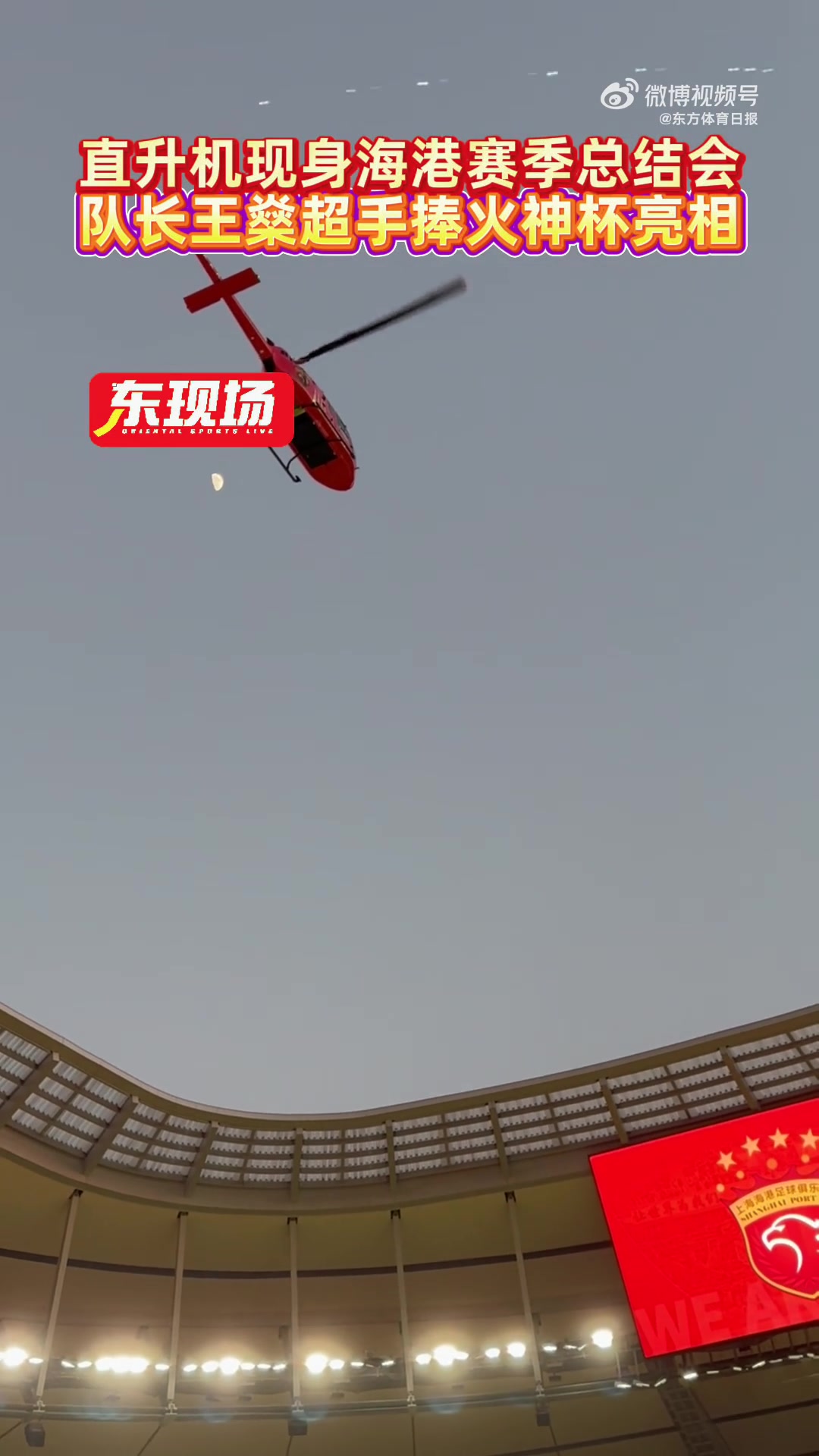 直升机现身海港赛季总结会!队长王燊超手捧火