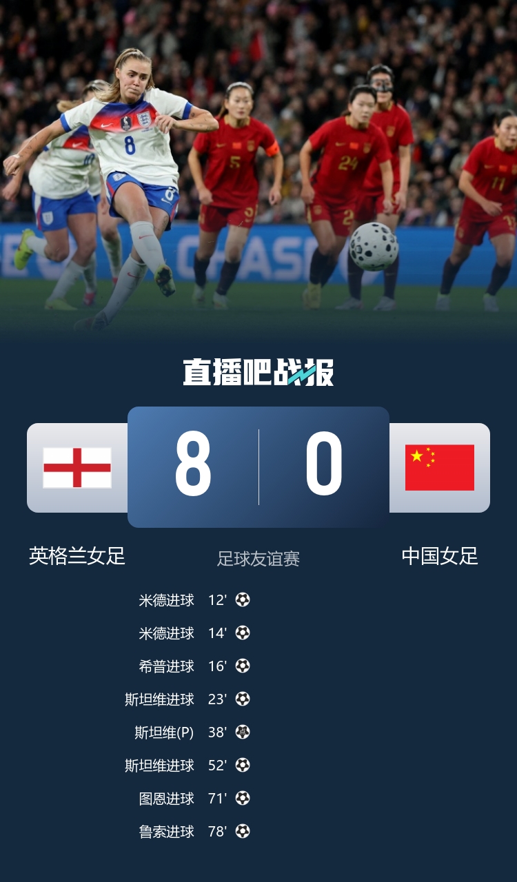 足球友谊赛,英格兰女足8-0大胜中国女足,女足全场遭压制,控球仅3成+6射门2射正。 先赛登顶!巴萨3-1阿拉维斯联赛4连胜 亚马尔传射+中柱奥尔莫双响